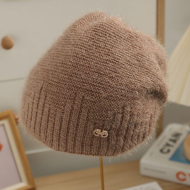Женская осенне-зимняя шапка из толстой вязки из шерсти и бархата One Size, Stretchable