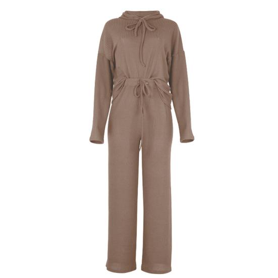 Женская осенняя толстовка с длинным рукавом и широкими брюками, трикотажный комплект, комплект одежды для отдыха L кофейный