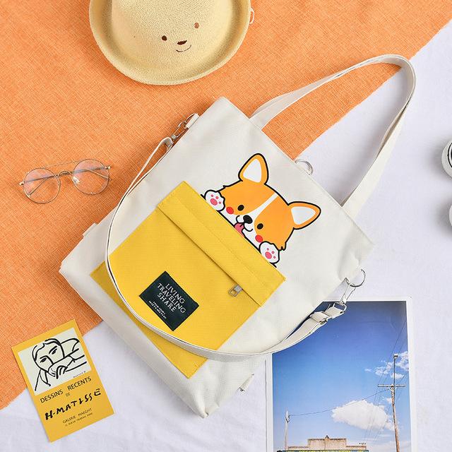 Женская парусиновая сумка, регулируемая сумка через плечо, большая вместительная студенческая сумка-тоут, сумка для покупок, повседневный рюкзак, милая сумка для собаки акита слоновая кость