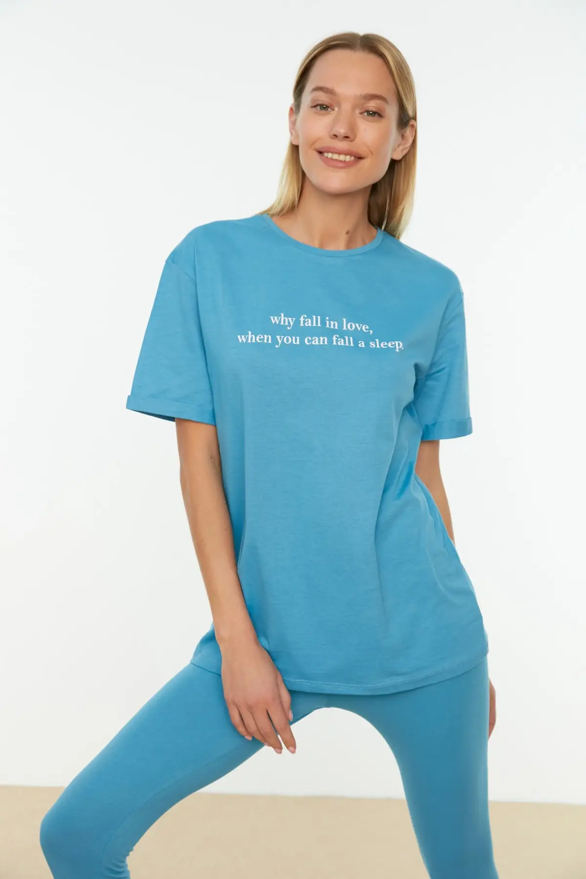 Женская пижама, Темно-Синяя вязаная пижама с принтом слогана для сна и отдыха, ночное белье, ночная рубашка, повседневная домашняя одежда