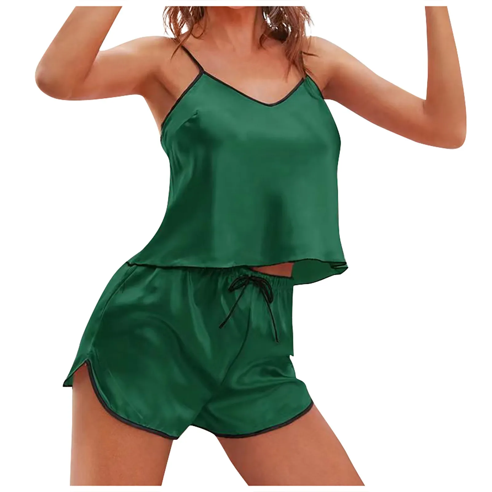 Женская пижама, атласная одежда для сна, женский короткий комплект, пикантная Пижама, ночная рубашка, топ без рукавов, штаны, пижама, нижнее белье