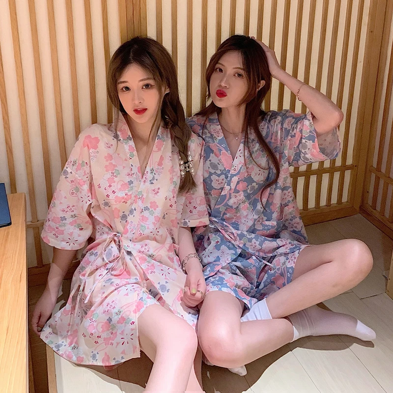 Женская пижама, летняя ночная рубашка, желтая, синяя ночная рубашка с разбитыми цветами, японский милый комплект из двух предметов, одежда для сна