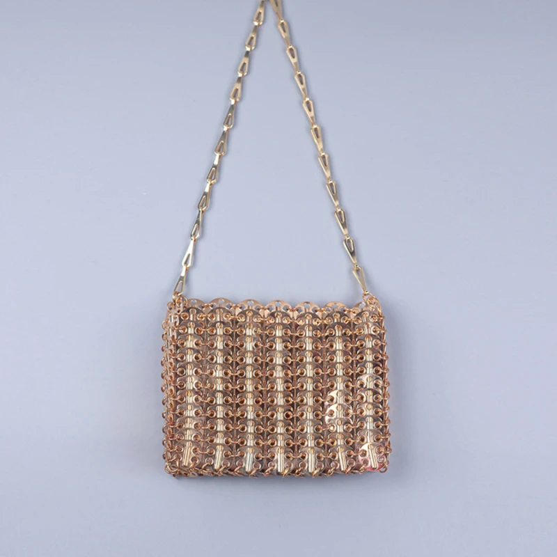Женская плетеная вечерняя сумка-клатч с цепочкой и металлическими блестками