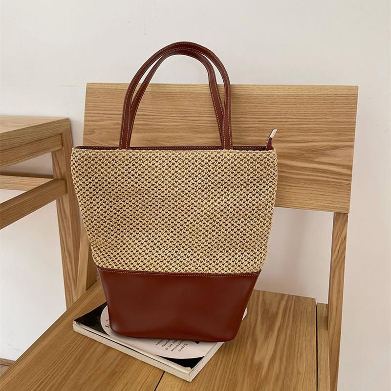 Женская плетеная сумка из ротанга с верхней ручкой и полой ручкой, вязаная крючком пляжная сумка из рафии, повседневные сумки