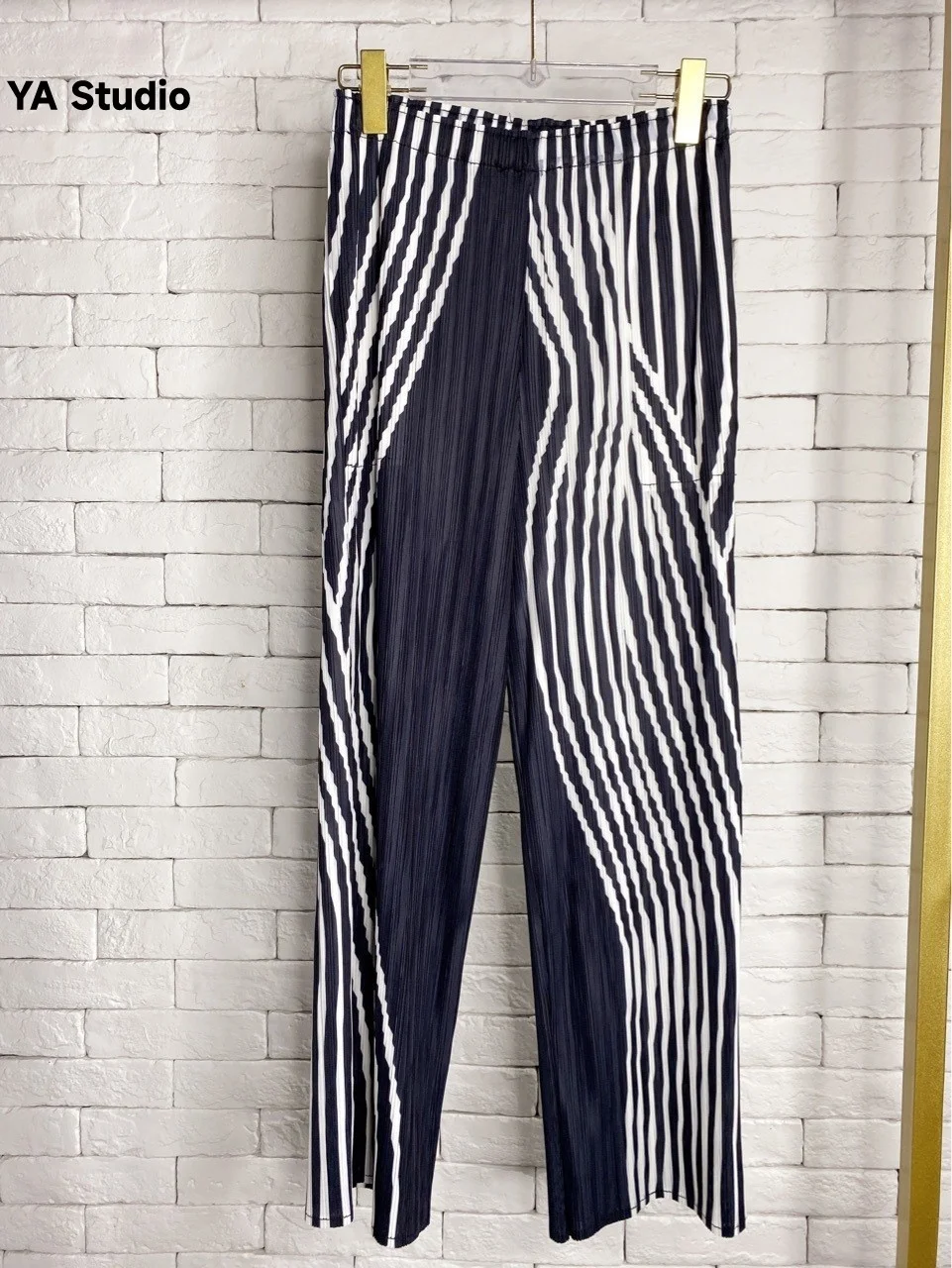 Женская плиссированная футболка [YA Studio] в полоску, облегающие топы без рукавов, с воротником-стойкой, новинка весны 2023, женская мода