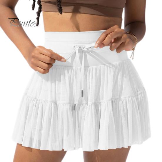 Женская плиссированная юбка-шорта, широкая эластичная высокая талия, регулируемая тюлевая юбка на шнурке с защитными шортами, однотонная мини-юбка с защитой от воздействия S белый
