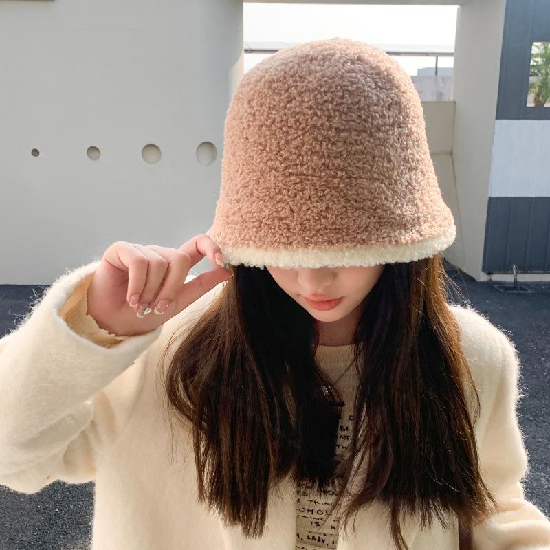 Женская плюшевая панама из искусственной овчины с цветными блоками, зимняя теплая шляпа-ведро, модная японская шляпа-колокол One Size