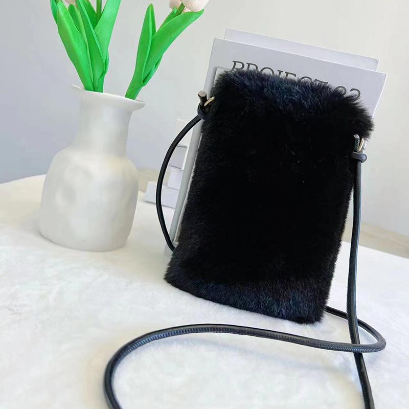 Женская плюшевая сумка для мобильного телефона, мини-сумка через плечо, дорожная сумка для покупок, зимняя диагональная сумка для монет, помады и наушников чёрный