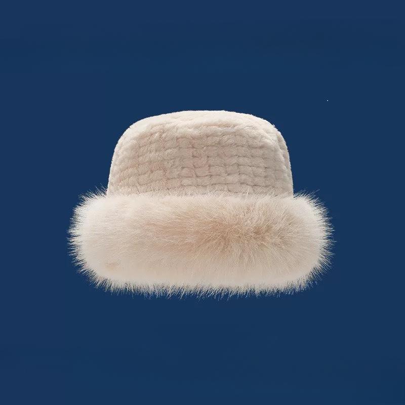 Женская плюшевая шапка из лисьего меха, осень-зима, корейская версия, повседневная, вязаная, теплая, ветрозащитная, большая шапка-ведро бежевый