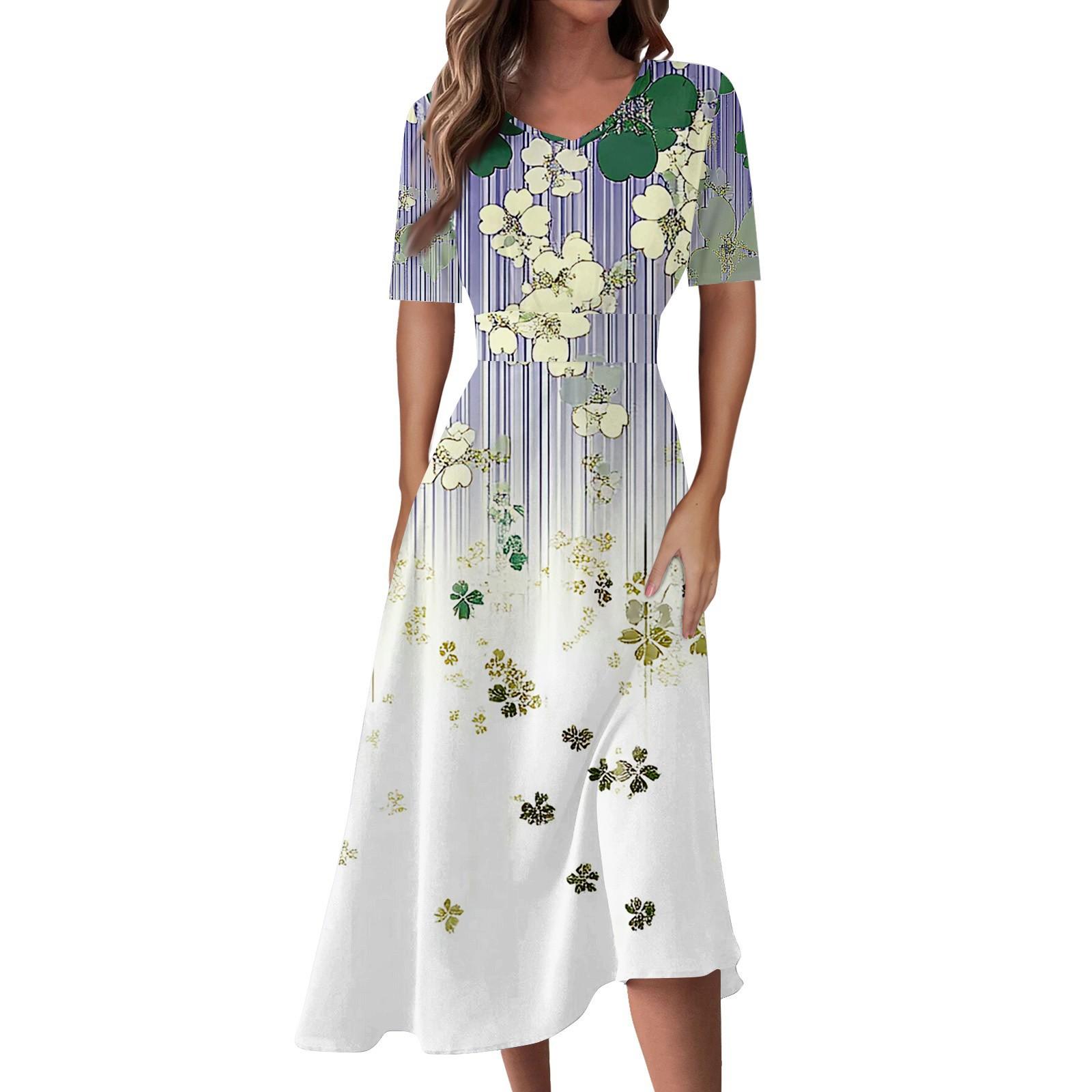 Женская повседневная мода Цветочный (лист) Платье-халат с принтом, V-образным вырезом, короткими рукавами и длинной юбкой-халат XL фиолетовый