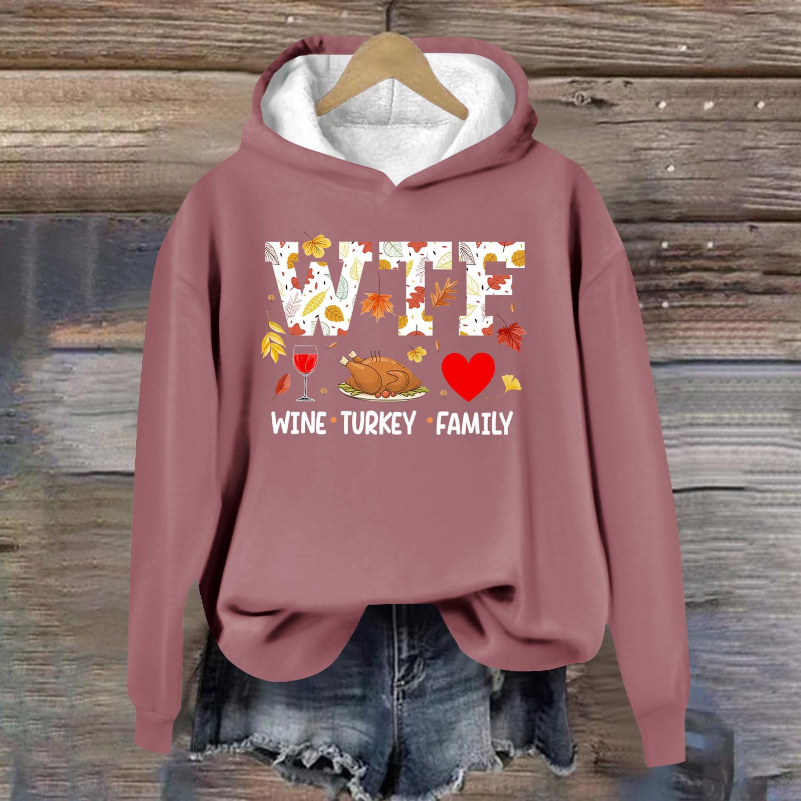 Женская повседневная мода винная индейка семейный принт на День благодарения длинный рукав O-образный вырез пуловер толстовки XXXL розовый