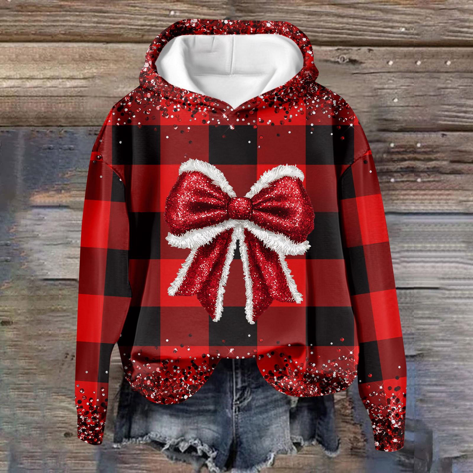 Женская повседневная мода рождественский принт длинный рукав O-образный вырез пуловер толстовки L винный