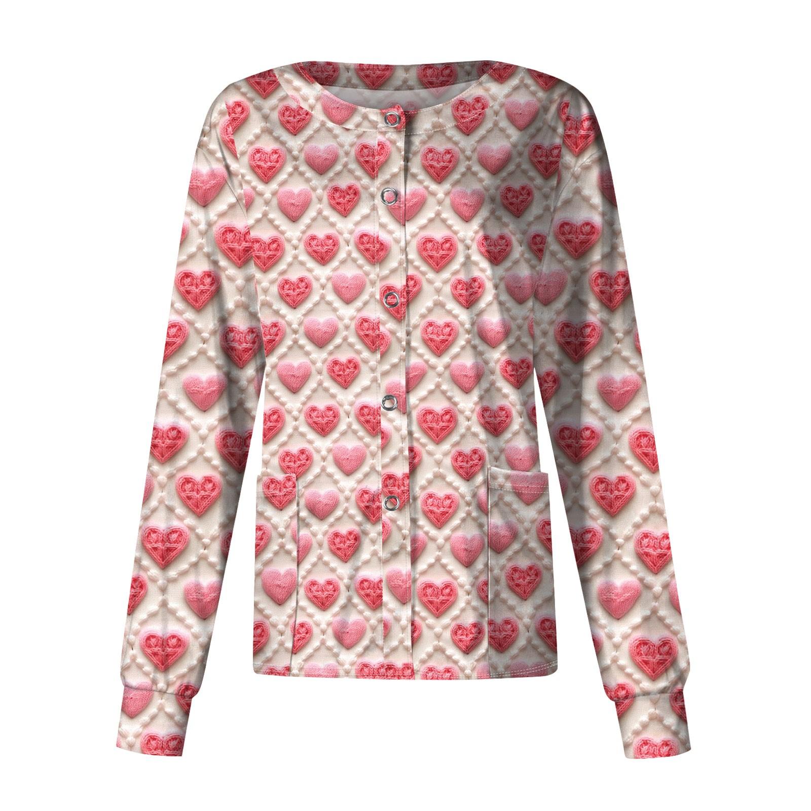 Женская повседневная мода с длинным рукавом и стоячими лацканами, однобортная рабочая куртка с принтом ко Дню святого Валентина XL арбуз красный