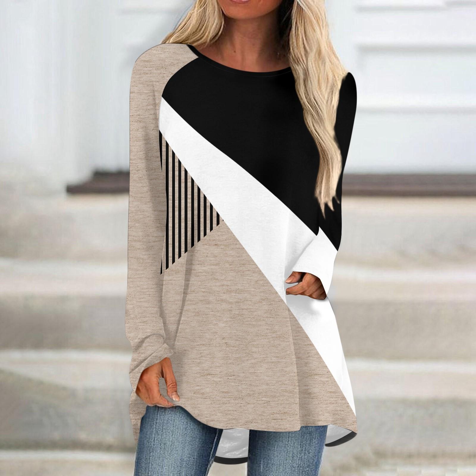 Женская повседневная мода с круглым вырезом, пуловер с принтом, длинный рукав, топ средней длины, блузка XXXL хаки