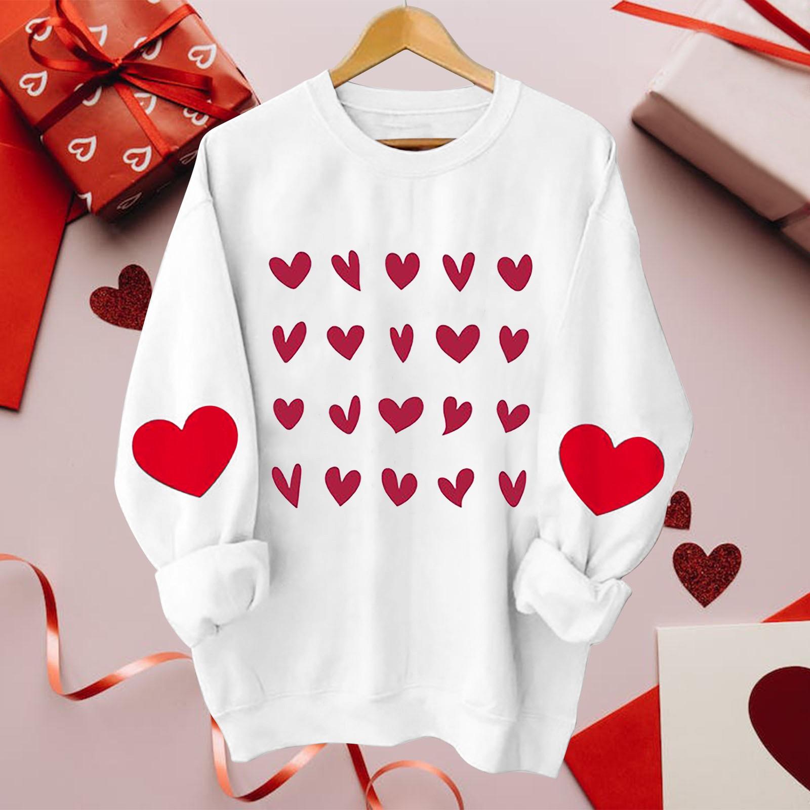 Женская повседневная модная блузка с длинным рукавом и круглым вырезом с принтом ко Дню святого Валентина M белый
