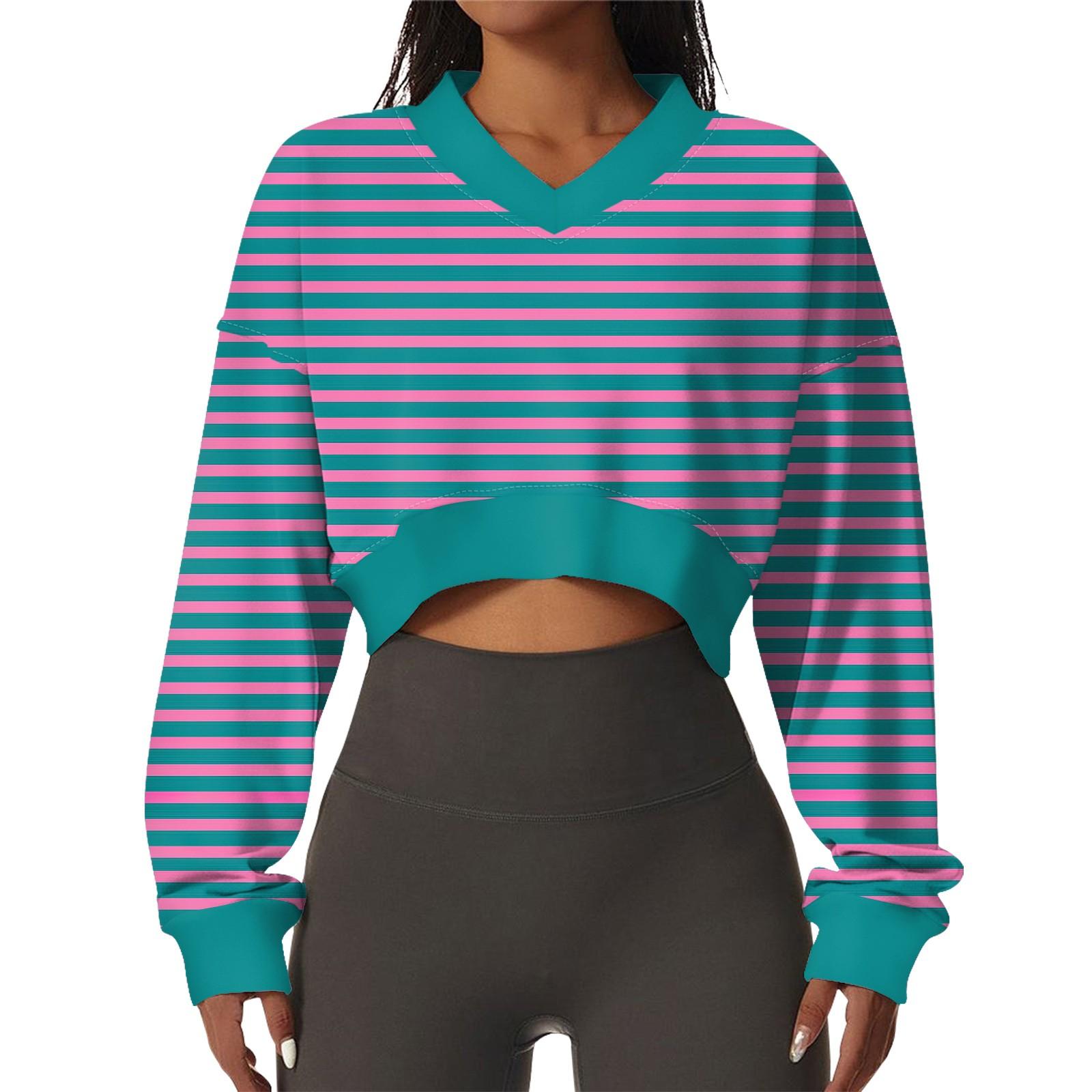 Женская повседневная модная сексуальная удобная спортивная толстовка с V-образным вырезом и длинным рукавом в полоску с графическим принтом S тёмно-синий