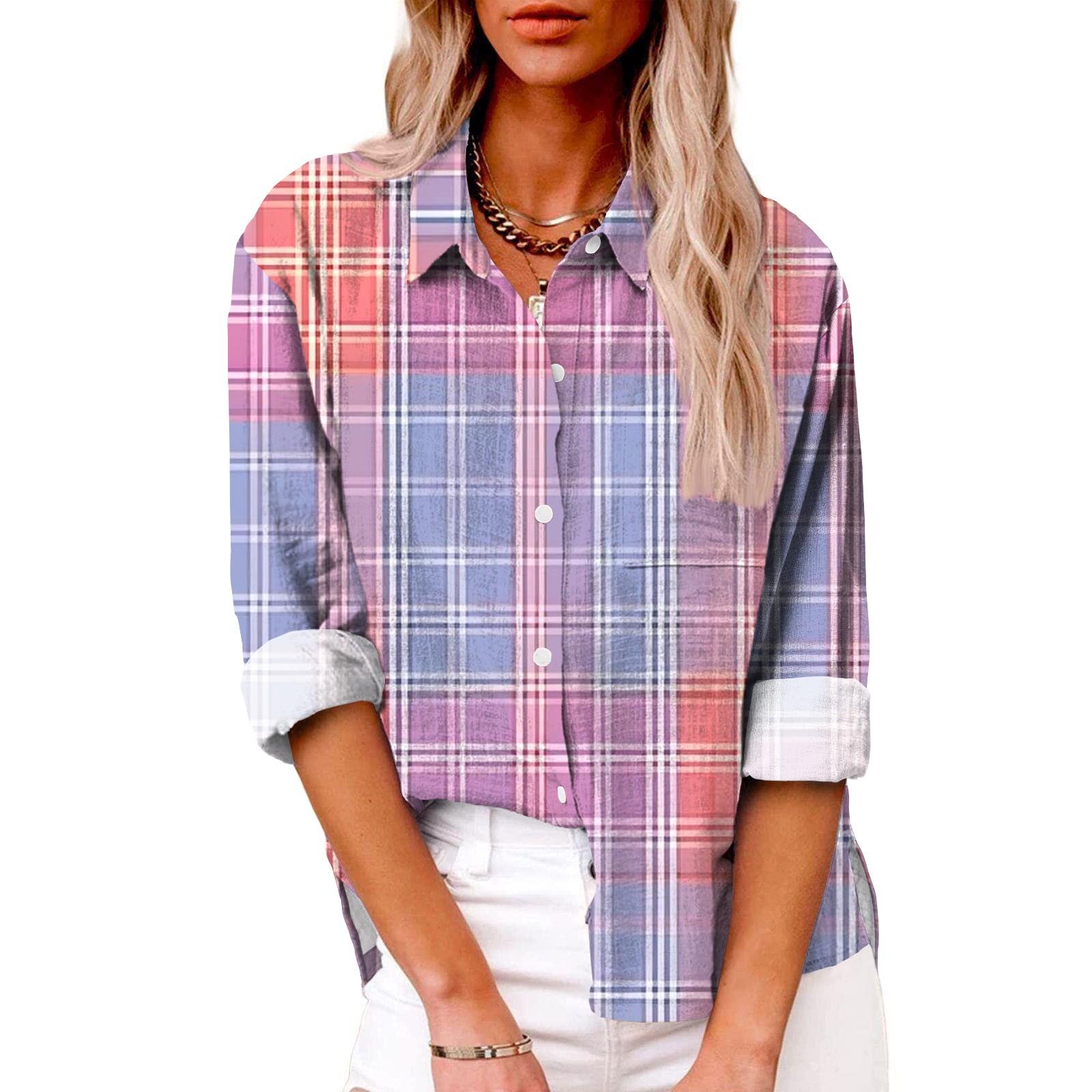 Christmas Women Fashion Print Round Neck Long Sleeved Ladies Blouses Button down Long Sleeve Athletic Fit Shirt