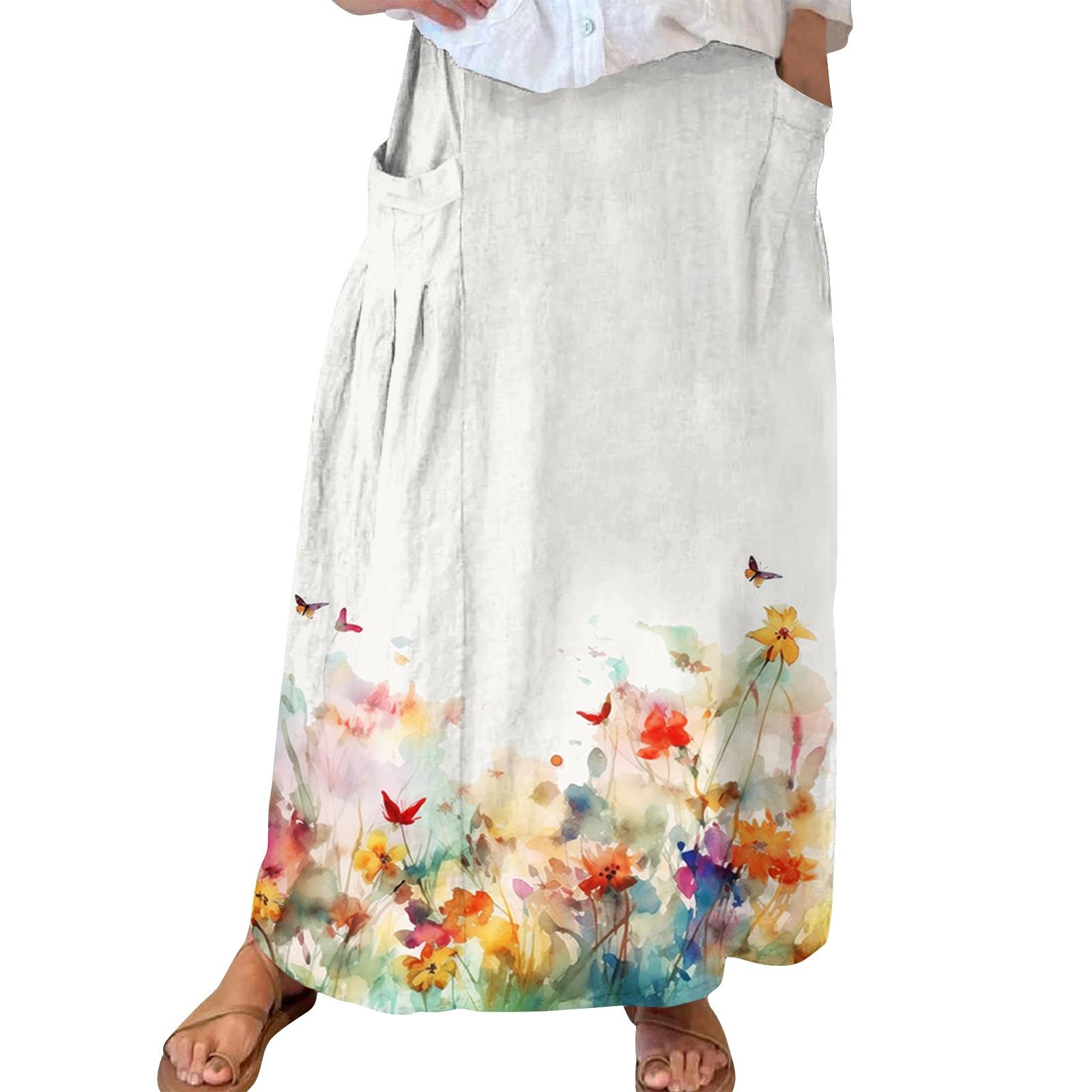 Женская повседневная свободная юбка-макси в стиле бохо с эластичной резинкой на талии, пляжная, струящаяся, с карманом L оранжевый