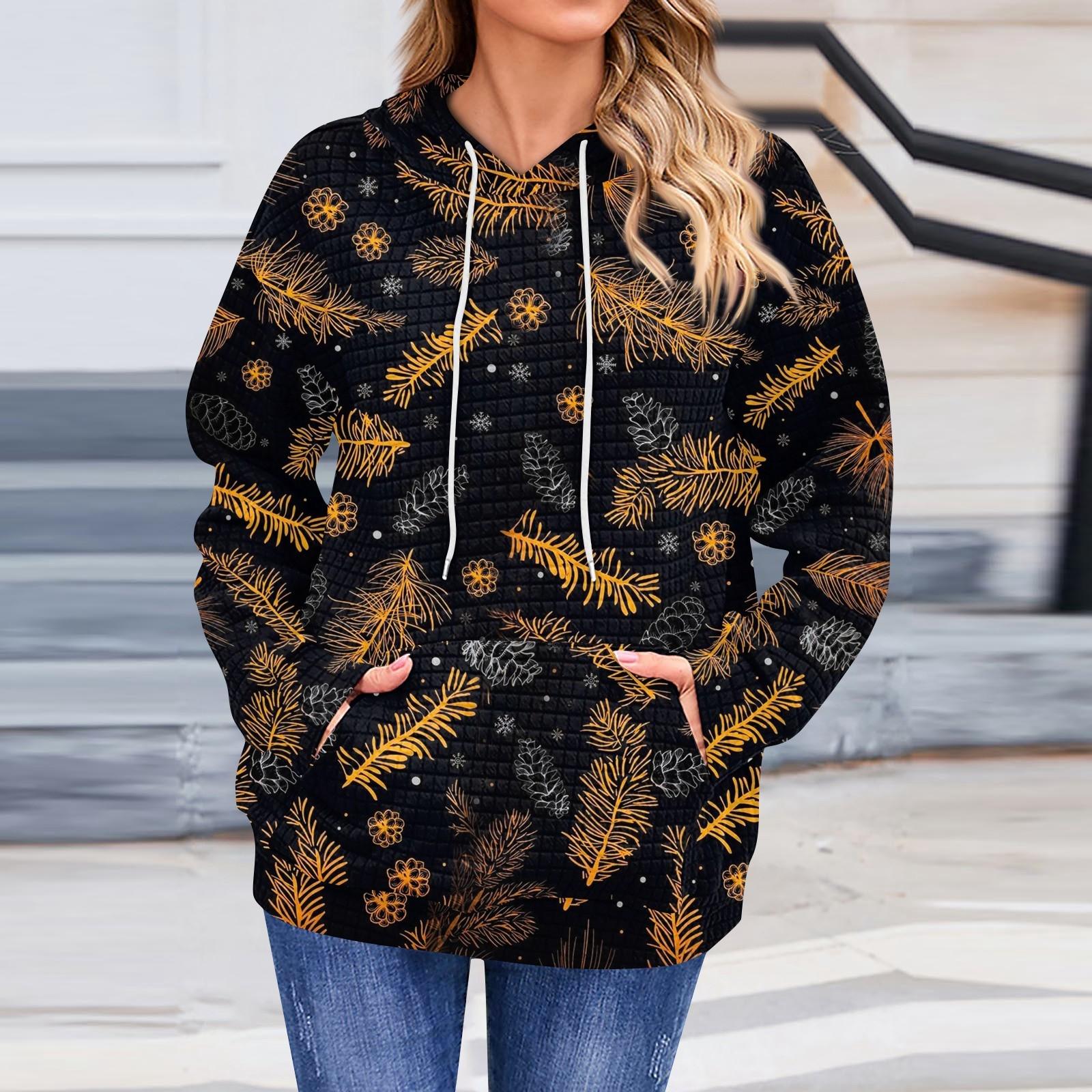 Женская повседневная толстовка с длинным рукавом и принтом «Снег», свободный пуловер с капюшоном L коричневый