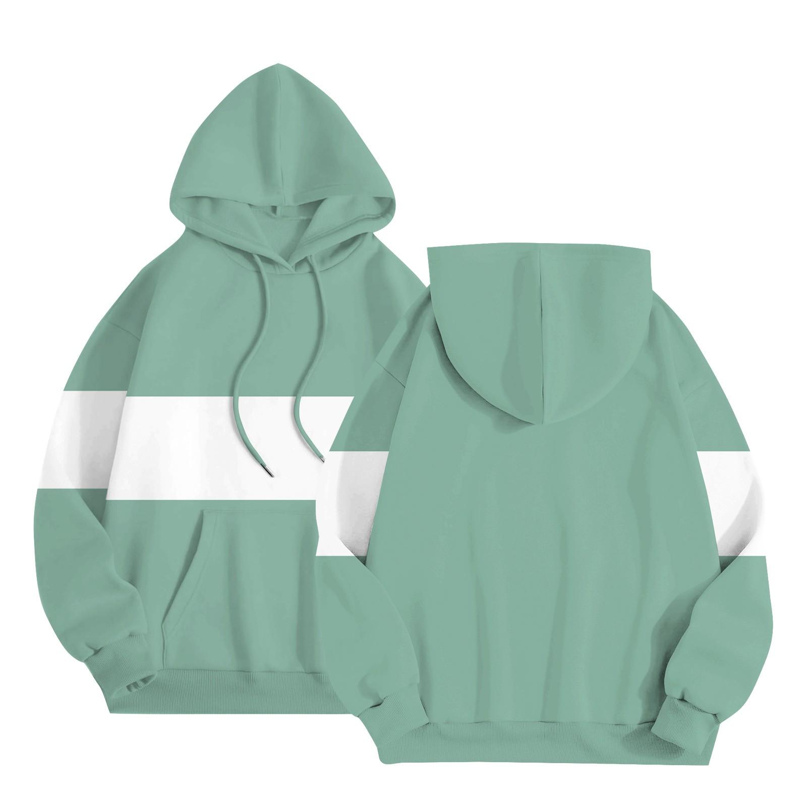 Женская повседневная толстовка с капюшоном и длинными рукавами в полоску в стиле пэчворк XXL зелёный