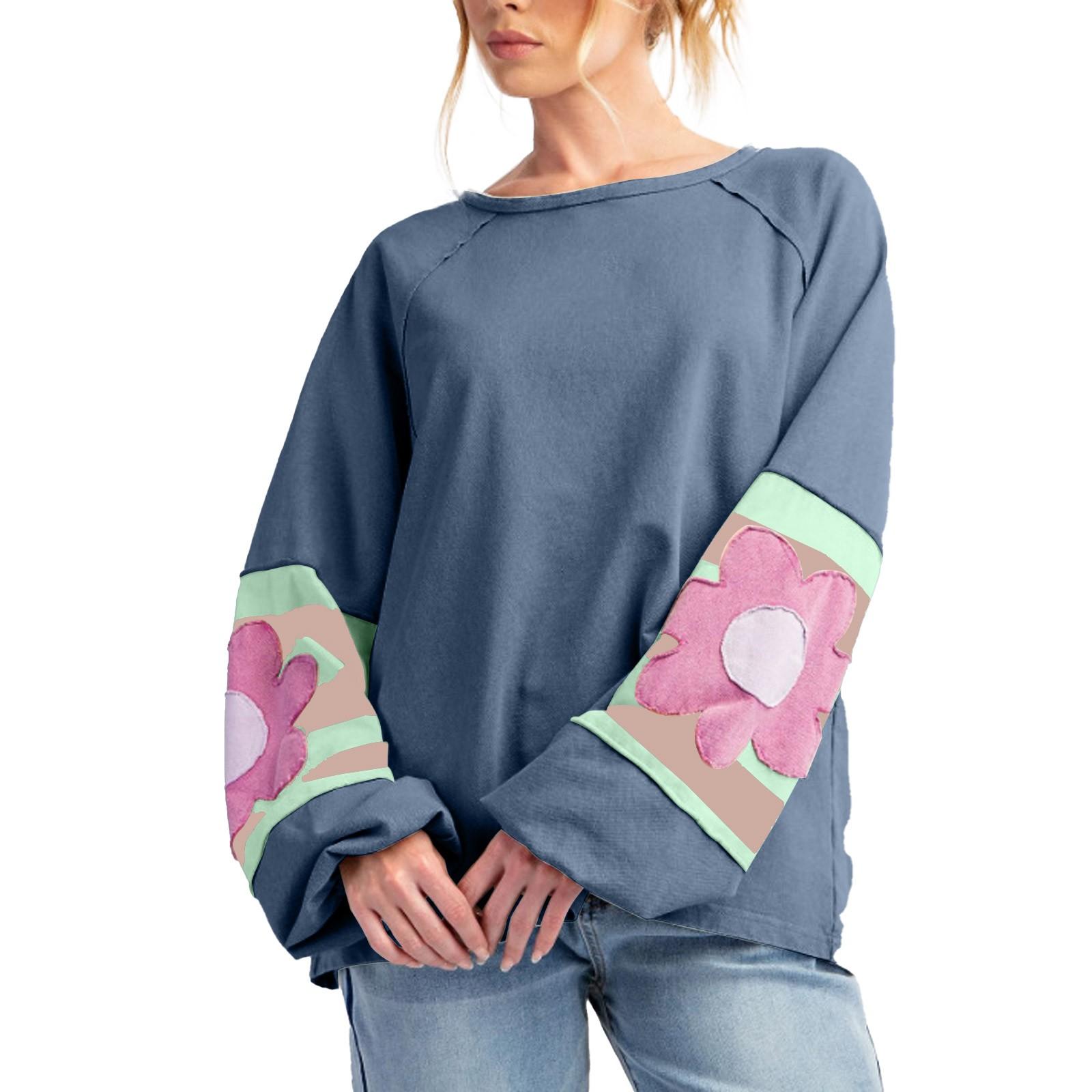 Женская повседневная толстовка с круглым вырезом, свободная, с цветными блоками, с длинными рукавами и спущенными плечами, модная толстовка XXL синий