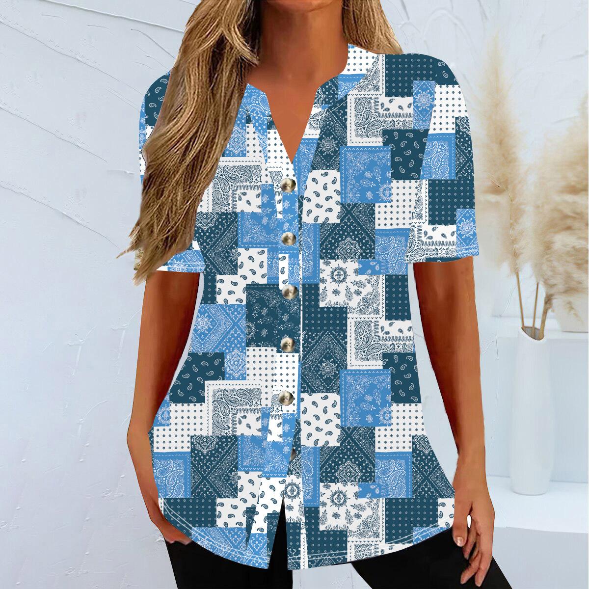 Женская повседневная футболка с короткими рукавами в этническом стиле с принтом, модная удобная свободная футболка больших размеров 5XL синий