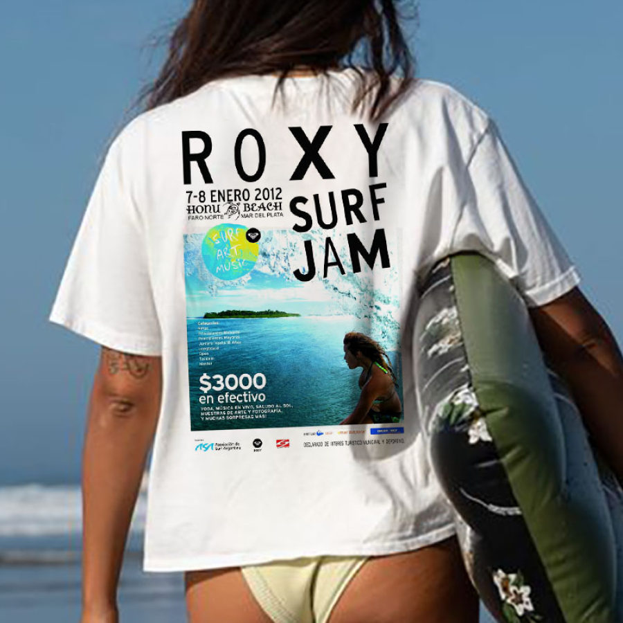 Женская повседневная футболка с короткими рукавами и плакатом Roxy с принтом для пляжного отдыха и отдыха