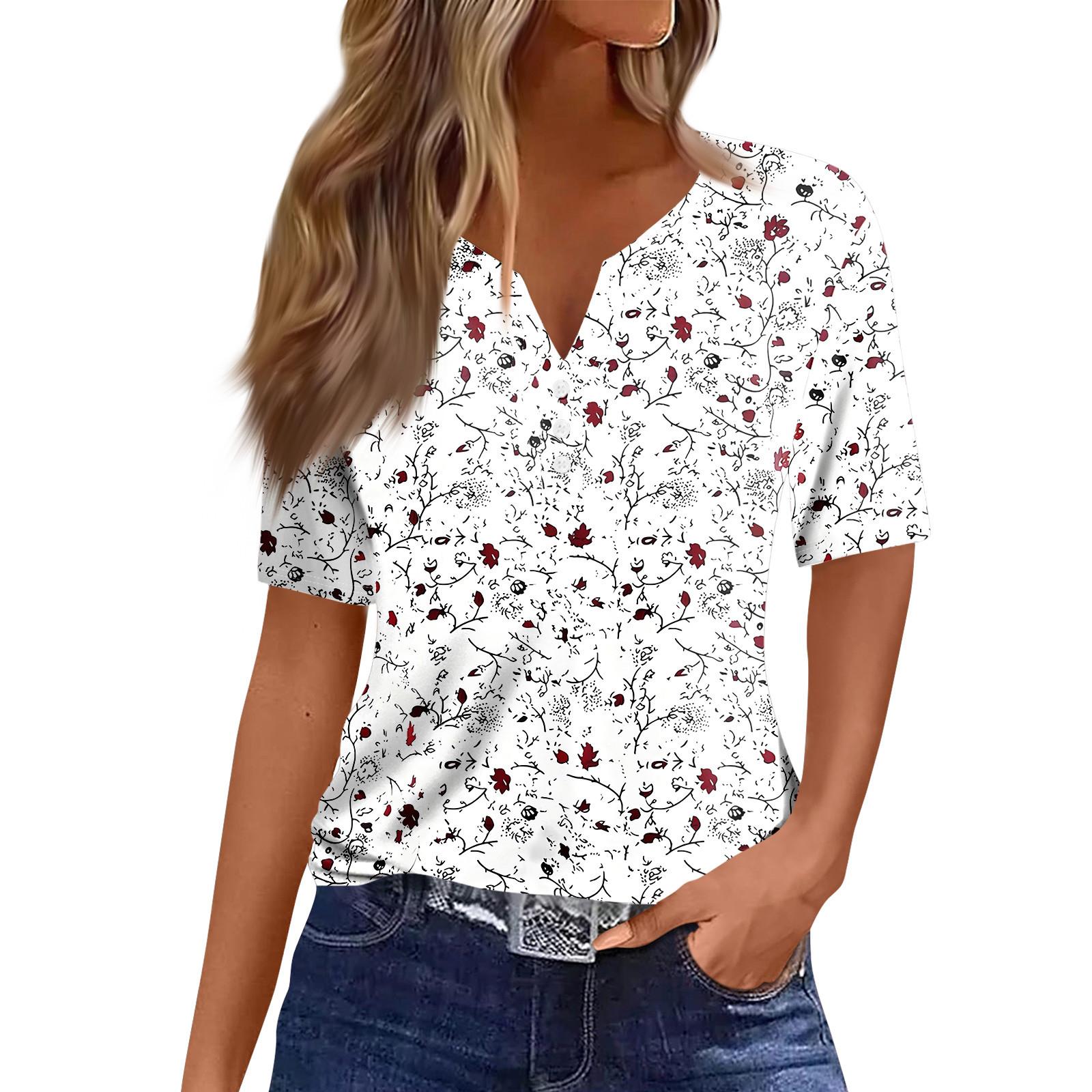 Женская повседневная футболка с короткими рукавами, V-образным вырезом и декоративными пуговицами XL белый