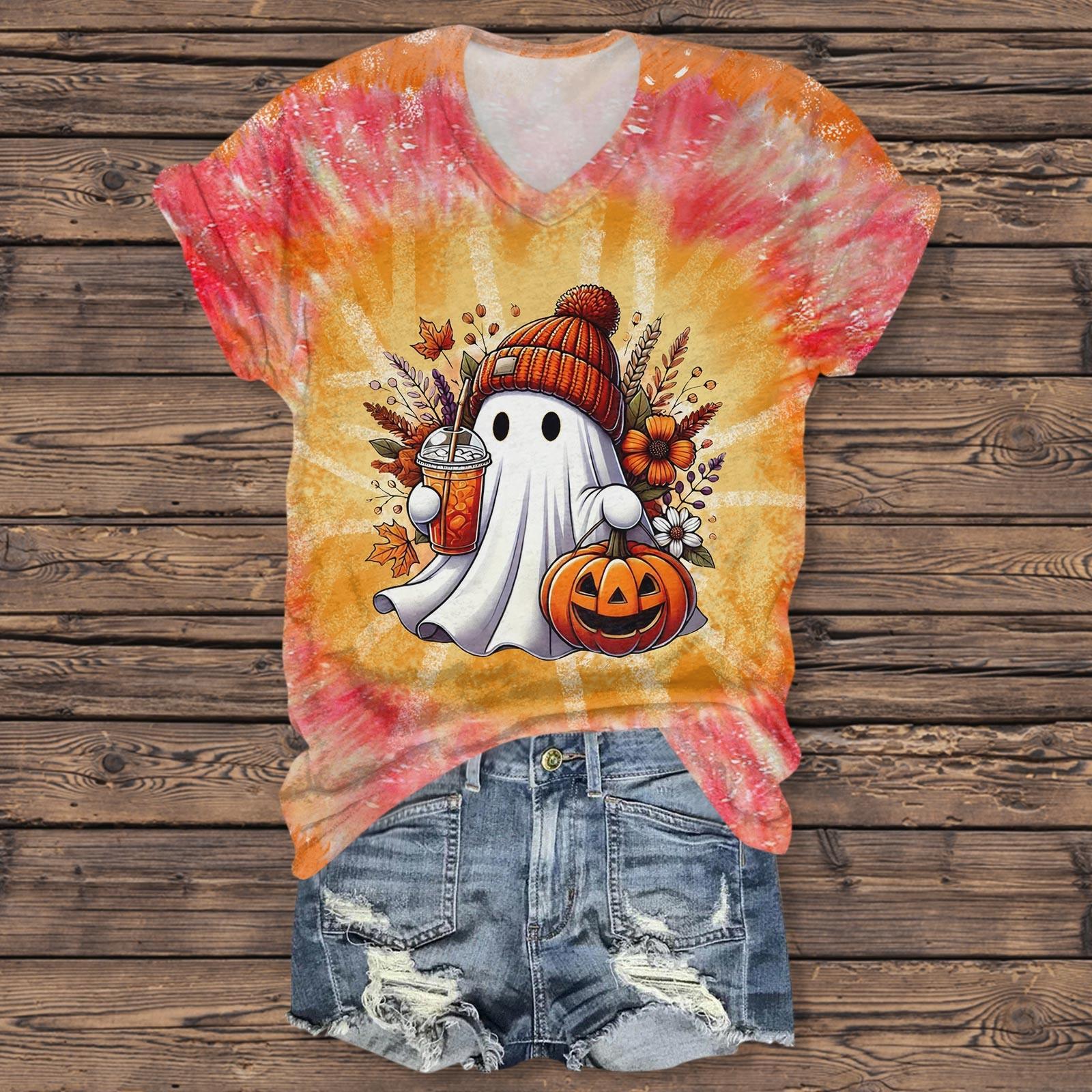 Женская повседневная футболка с короткими рукавами и V-образным вырезом на тему Хэллоуина L шафрановый