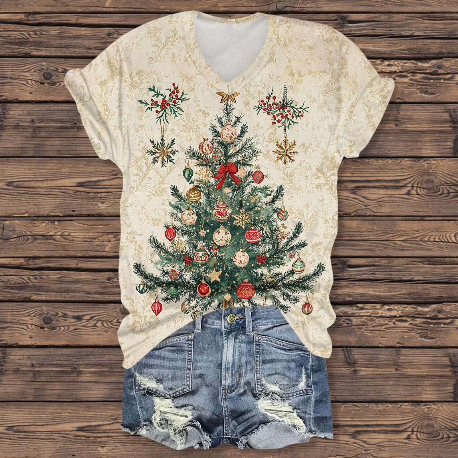 Женская повседневная футболка с коротким рукавом и V-образным вырезом со снежинками L