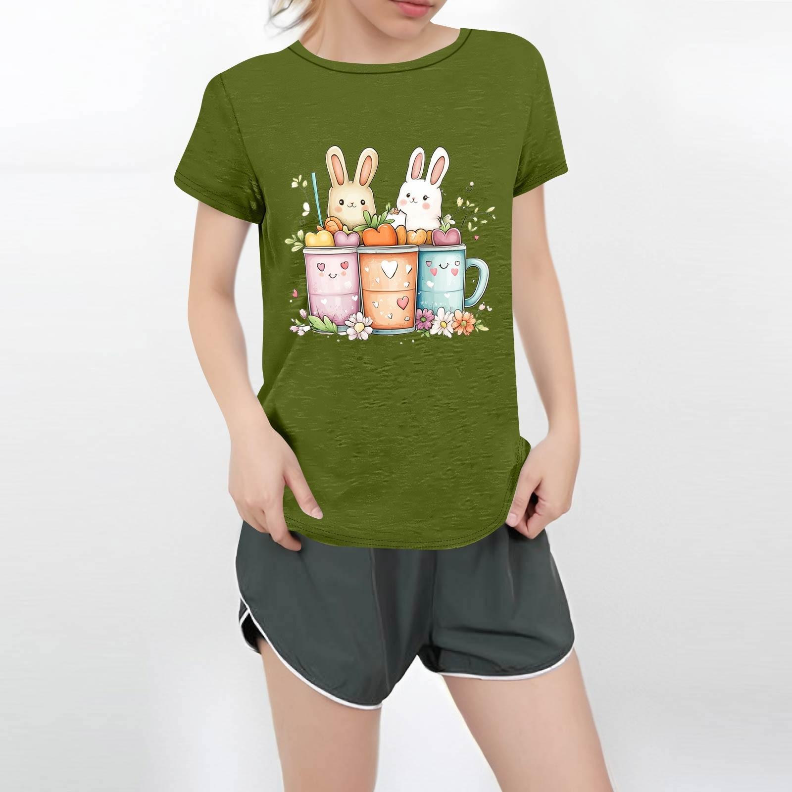 Женская повседневная футболка с круглым вырезом и короткими рукавами с принтом L армия зеленый