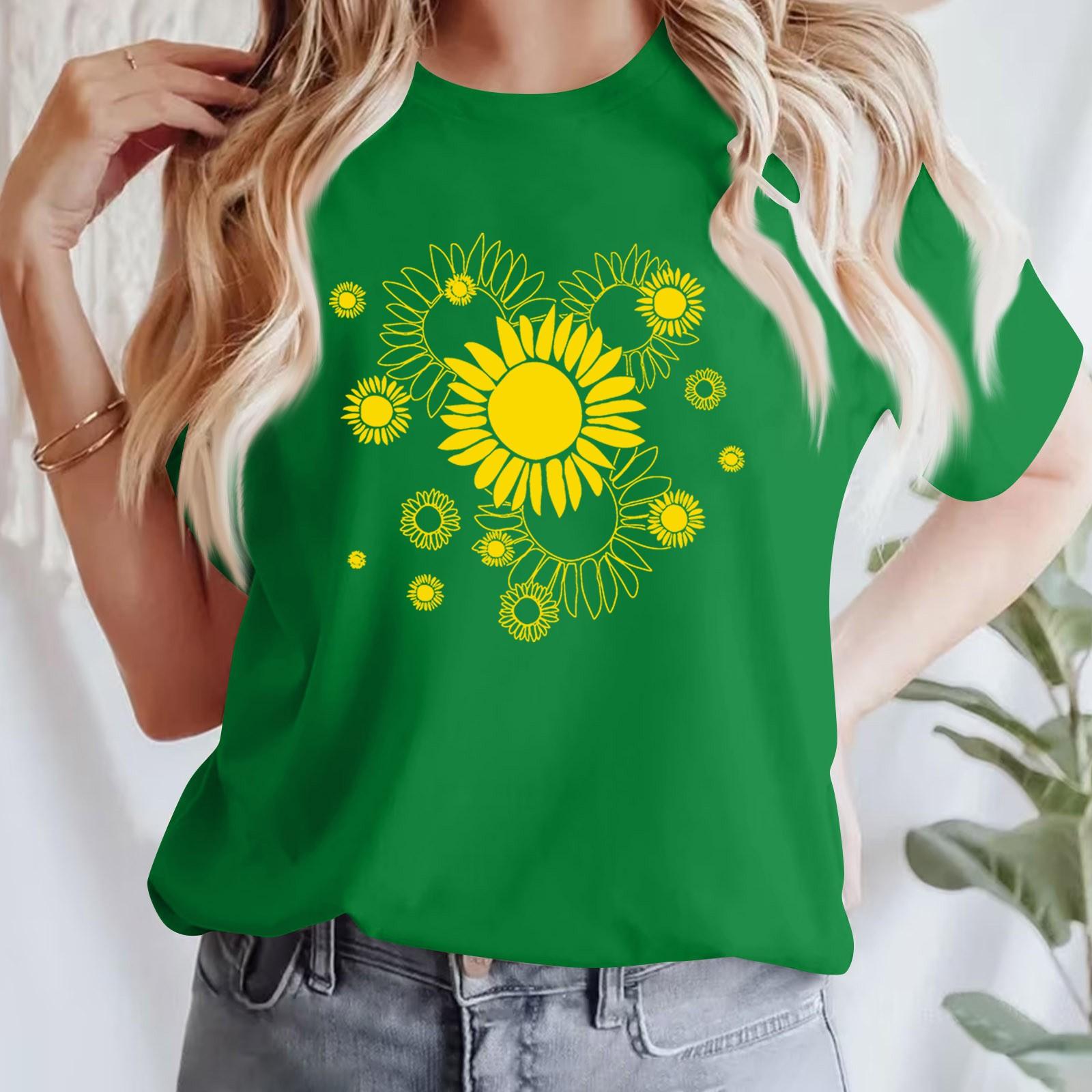 Женская повседневная футболка с принтом, пуловер с круглым вырезом, топ с короткими рукавами XXL зелёный