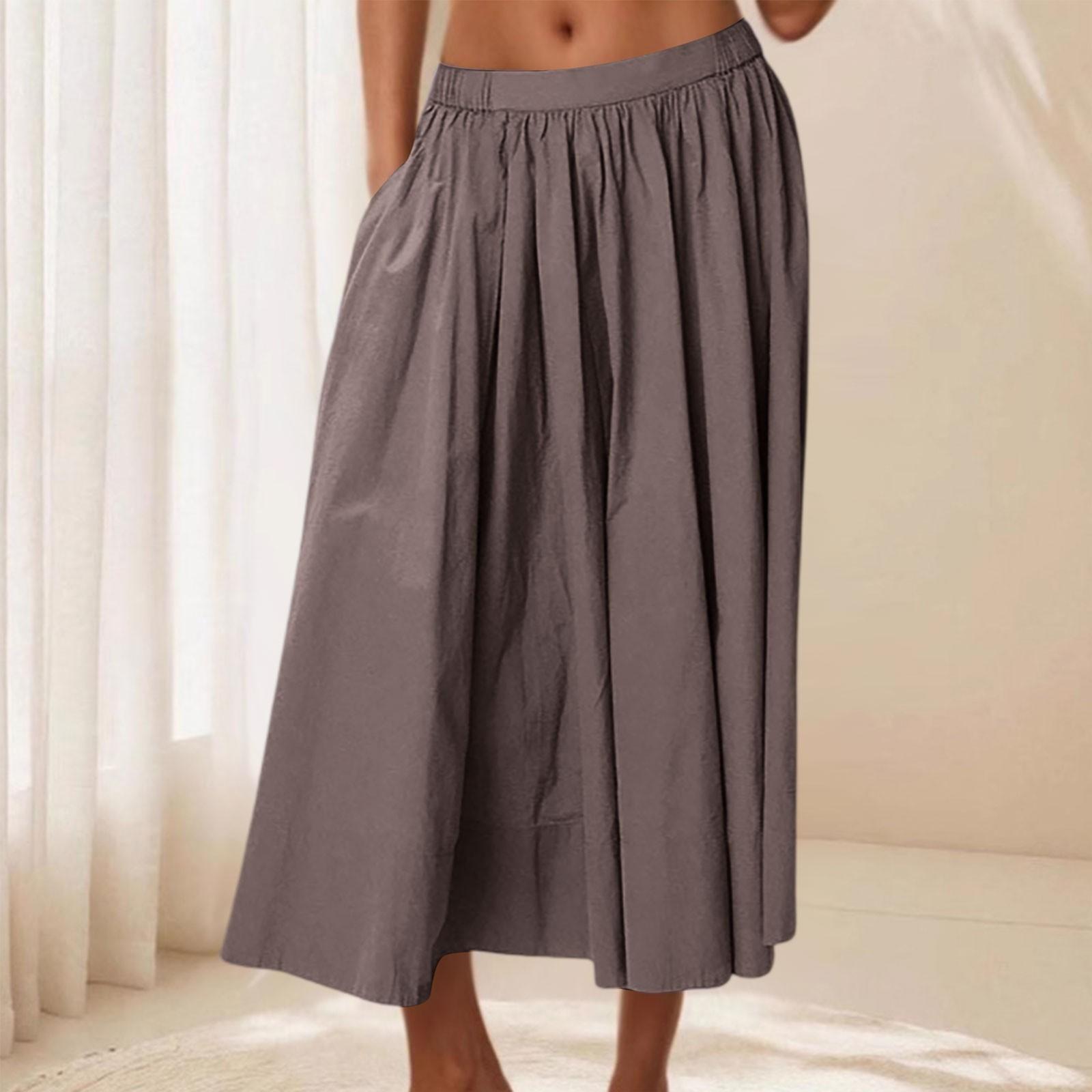 Женская повседневная юбка Легкая элегантная А-силуэта с высокой талией Летняя пляжная юбка для отпуска XL коричневый