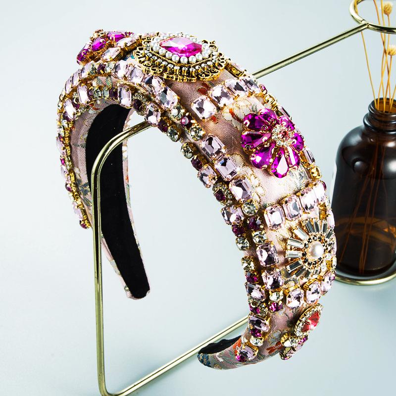 Женская повязка для волос, тяжелая промышленность, дворец в стиле барокко, красочная лента с полным сверлом, утолщенная губчатая вышивка с широким краем, украшение для волос