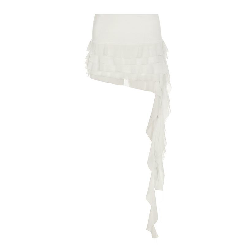 Женская праздничная воланы нерегулярная марлевая многослойная темпераментная низкая талия универсальная сексуальная юбка S белый