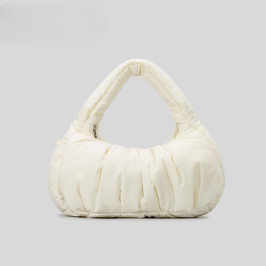 Женская простая легкая сумка через плечо в форме полумесяца из нейлона с зажимом из хлопка, сумка-подмышка в складку белый
