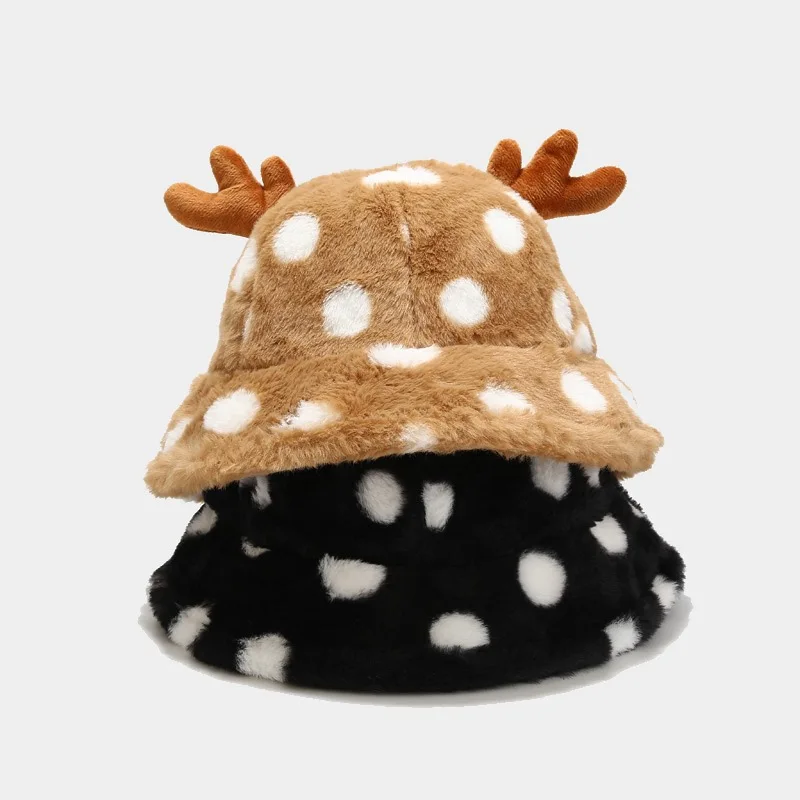 Женская пушистая осенне-зимняя шапка с рисунком оленя, аксессуар для отдыха на природе для подростков