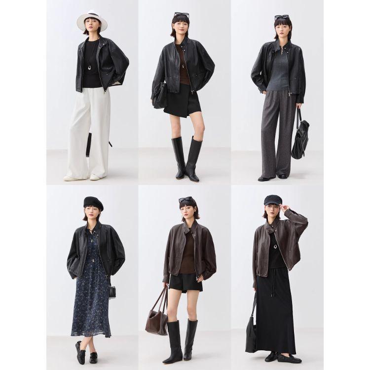 Женская ретро мотоциклетная кожаная куртка с коротким воротником-стойкой - Супермягкая протеиновая кожа, Осень 2025 Default Item