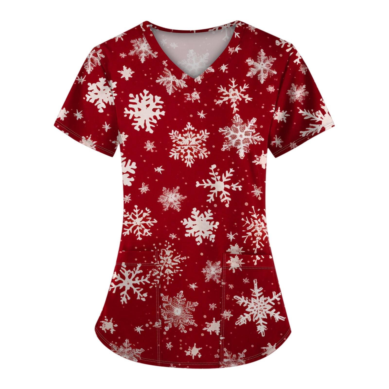 Женская рождественская печатная рабочая униформа с V-образным вырезом и карманом, защитная униформа S винный