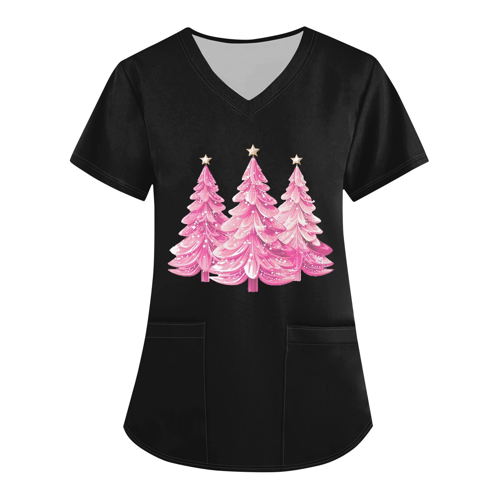Женская рождественская униформа с принтом, рабочая униформа, защитная рабочая форма с карманом и v-образным вырезом S