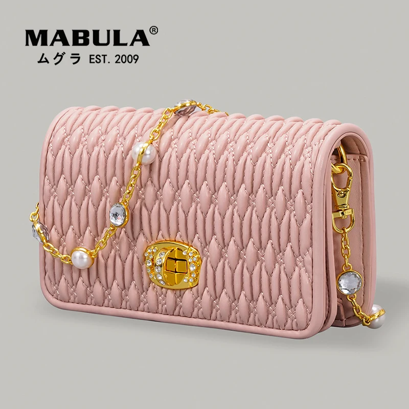 Женская розовая сумка через плечо MABULA с жемчужной цепочкой, простая стильная стеганая вечерняя сумочка на плечо, роскошный клатч, сумки