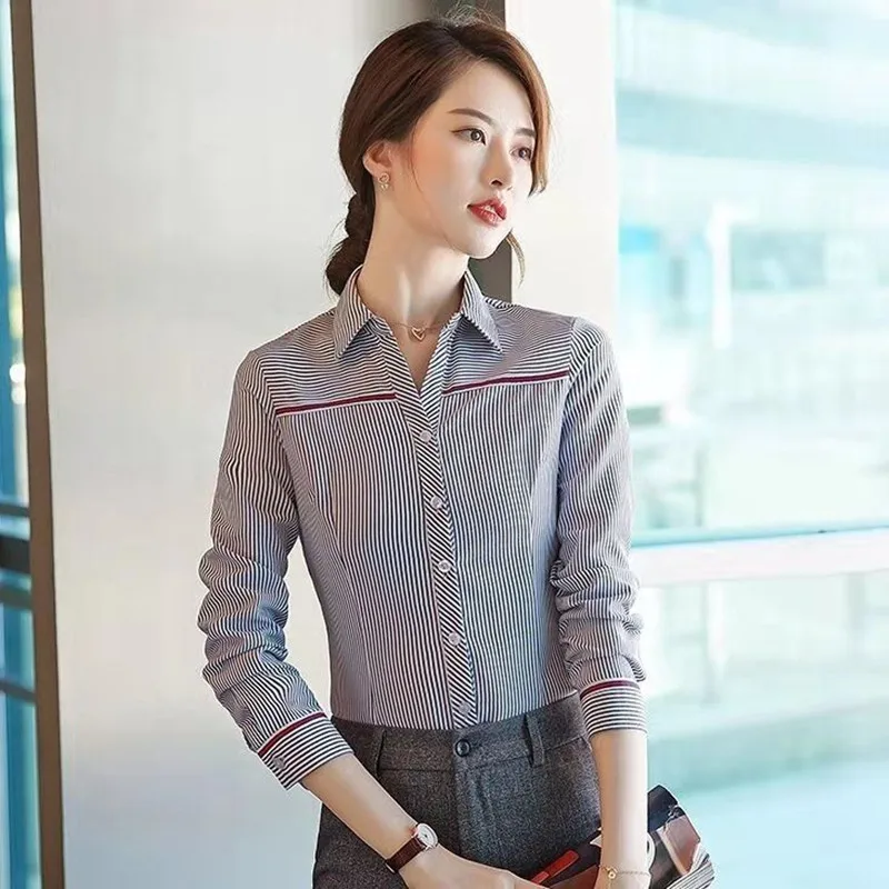 Женская рубашка в полоску, с отложным воротником и длинным рукавом