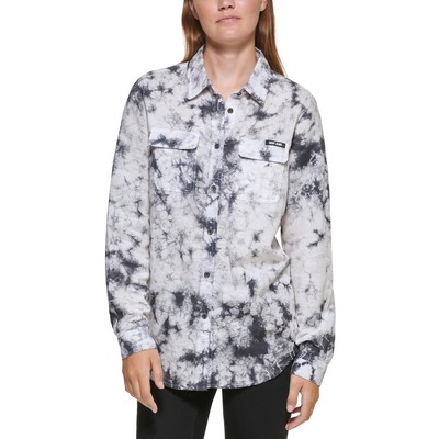 Женская рубашка на пуговицах с карманом и принтом DKNY Jeans из смеси льна BHFO 8684