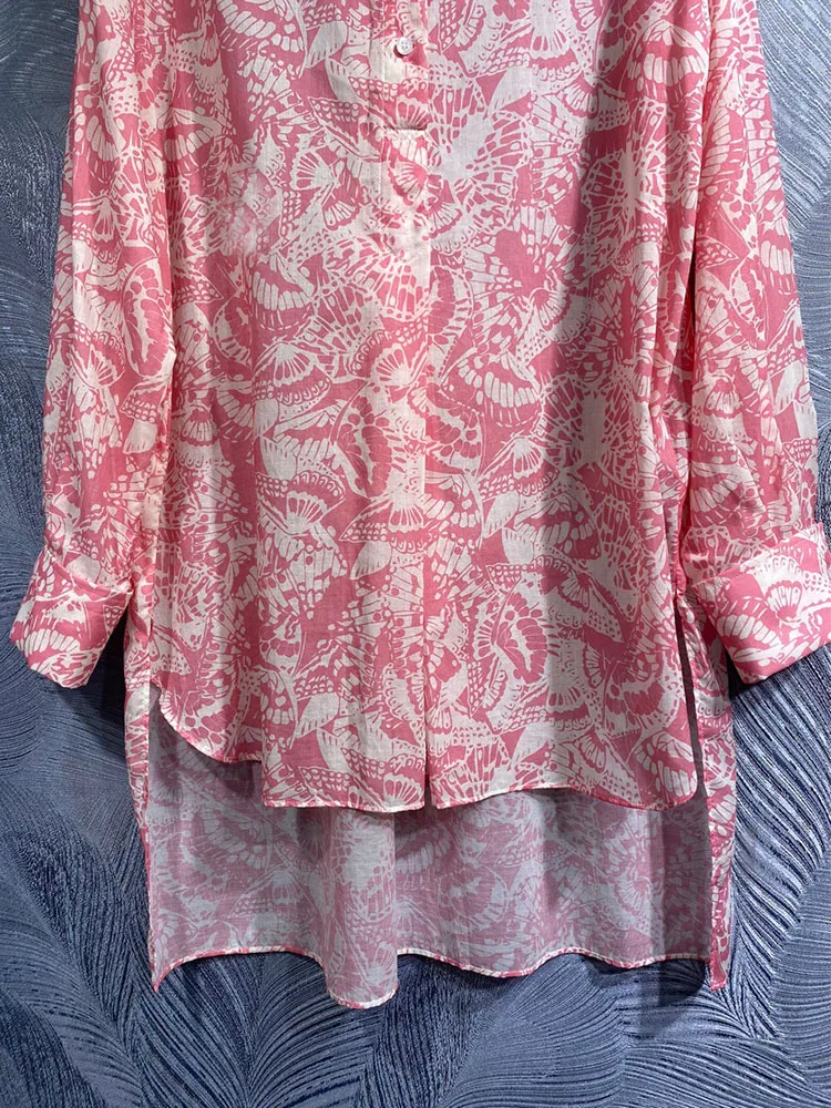 Женская рубашка с асимметричным принтом, 100% хлопок, весна, лето, уличные, повседневные ноутбуки