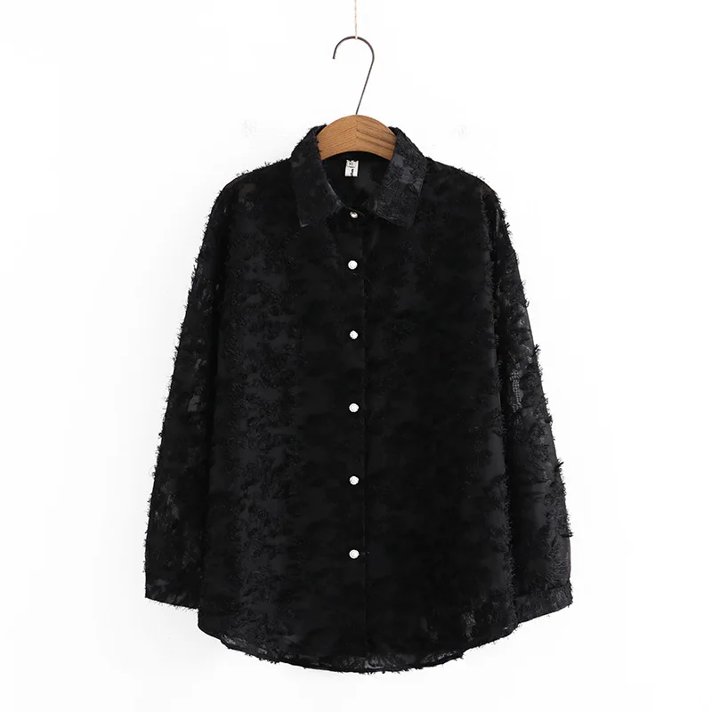 Женская рубашка с длинными рукавами O воротник черная футболка 3XL 4XL 5XL 6XL