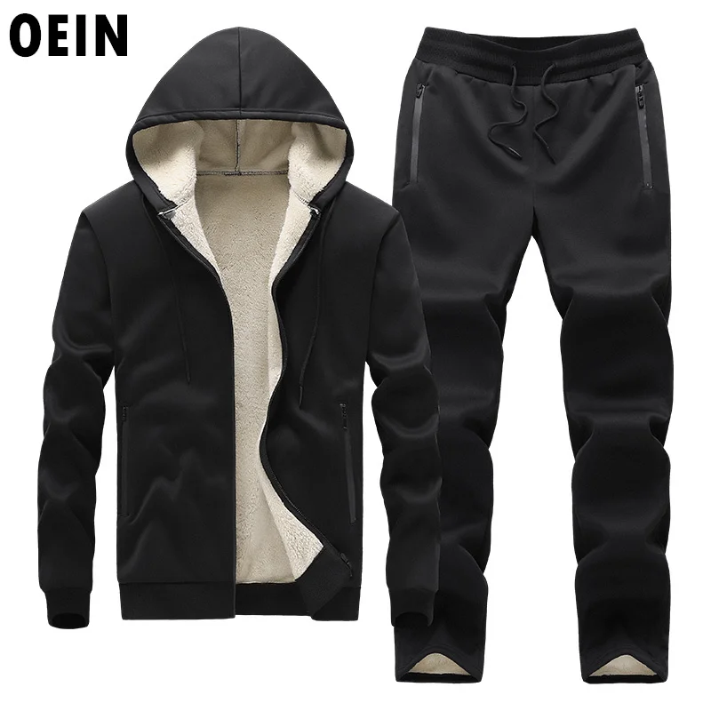 Men Hooded Tracksuit 2021 Winter Fleece The New Black Trend Keep Warm Loose Men's Casual Sweatshirts Tracksuit Men Sport Suit
