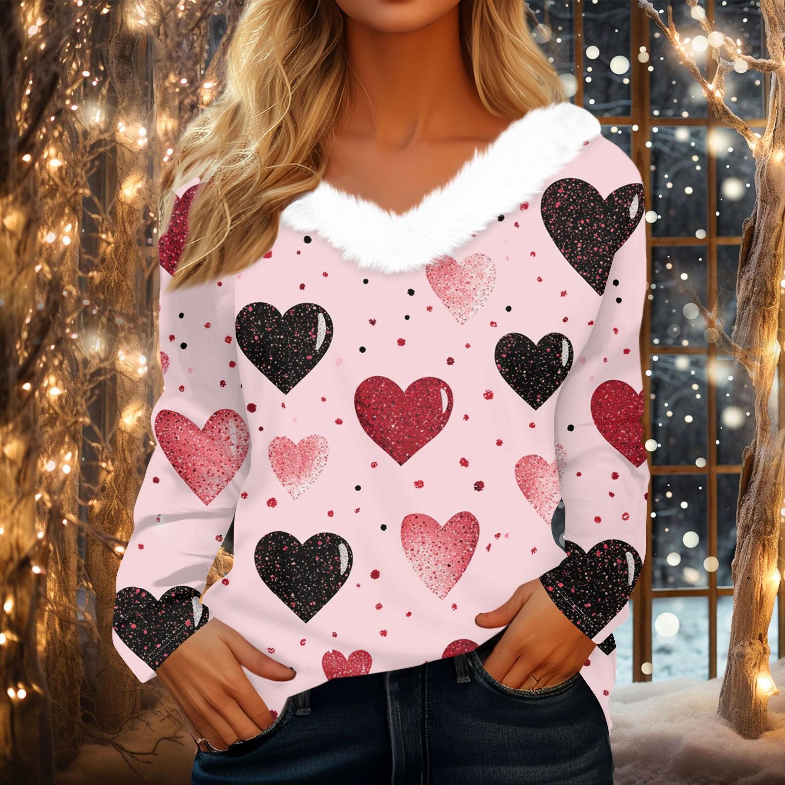 Женская рубашка с длинным рукавом и принтом в виде сердца ко Дню святого Валентина, повседневная свободная футболка с V-образным вырезом, топы XXL