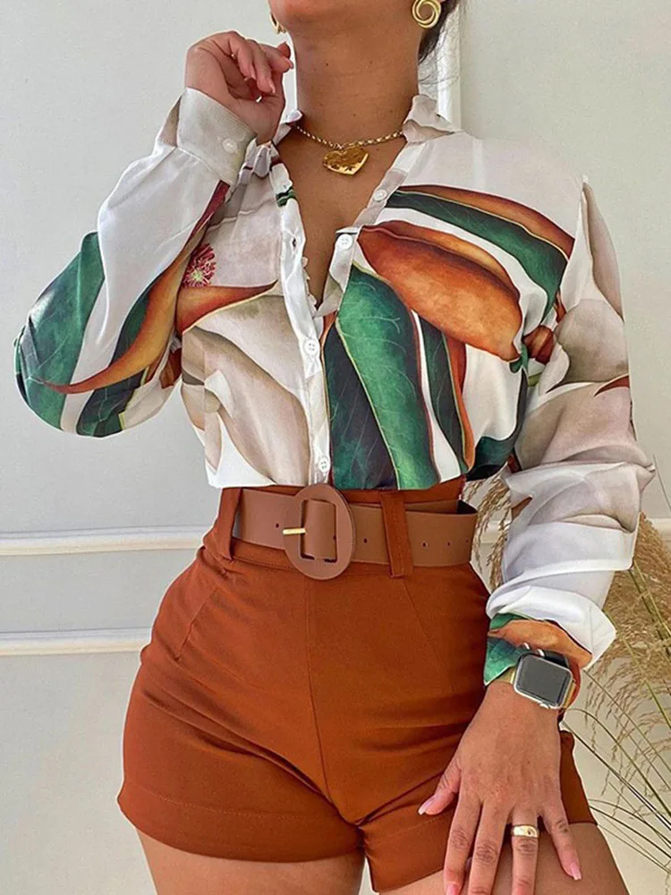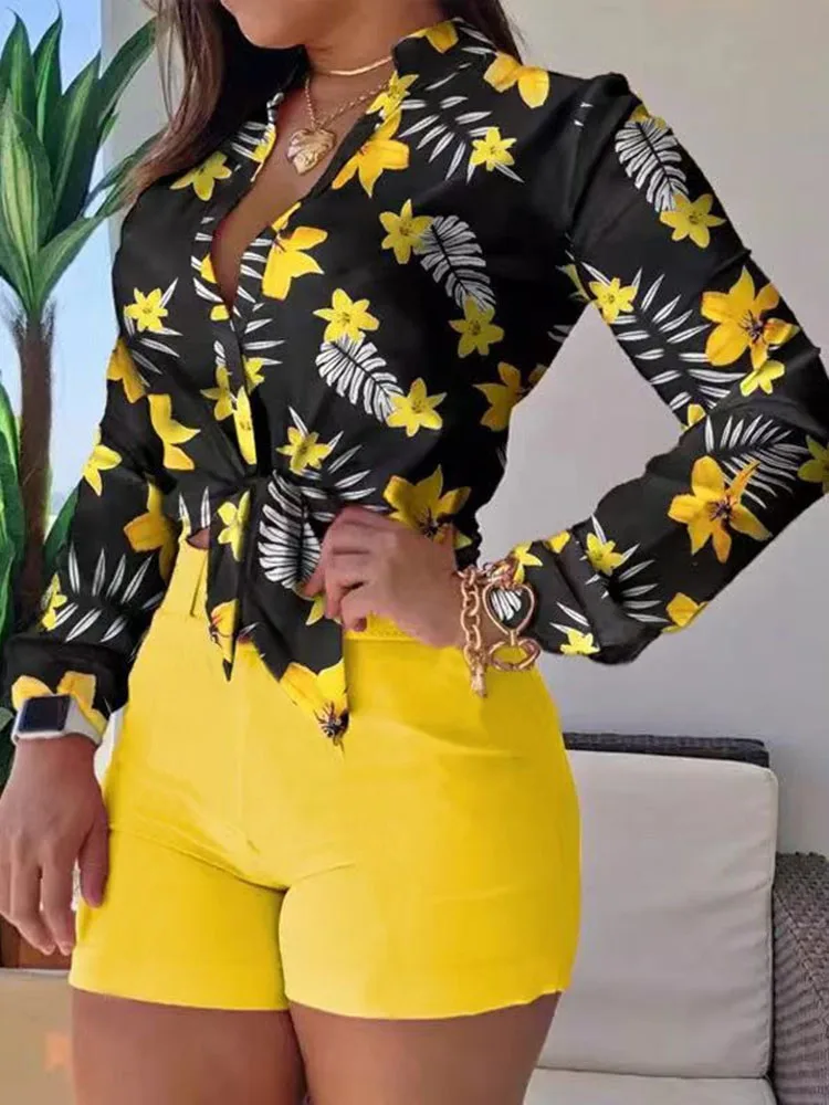 Женская рубашка с длинным рукавом и принтом, комплект из двух предметов