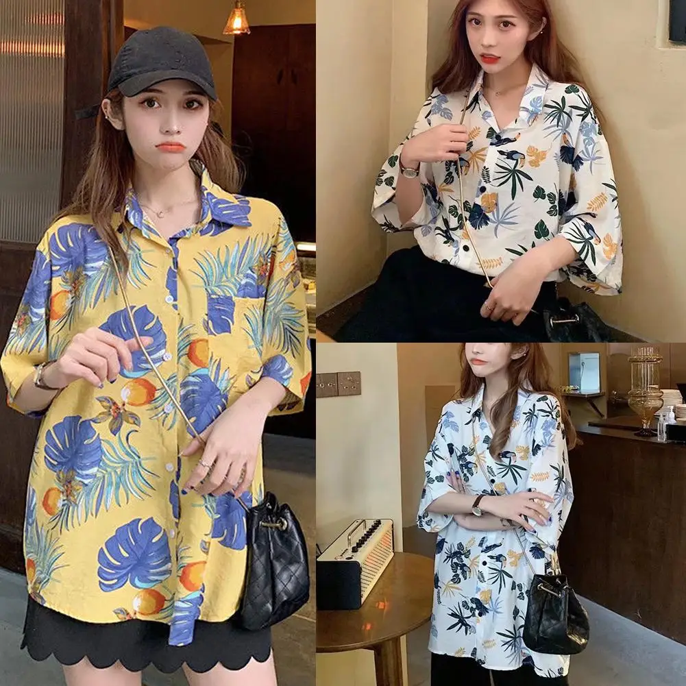 Женская рубашка с коротким рукавом и цветочным принтом, в пляжном стиле