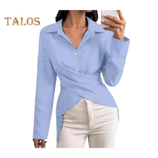 Женская рубашка с лацканами, длинный рукав, однобортная рубашка, топы, однотонные пуговицы, планка, осенняя рубашка, повседневная одежда XXL синий